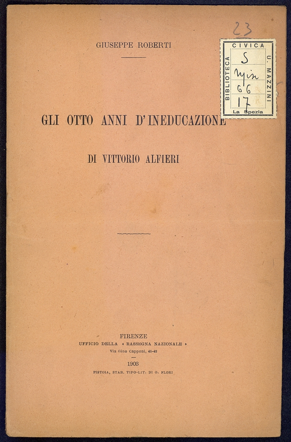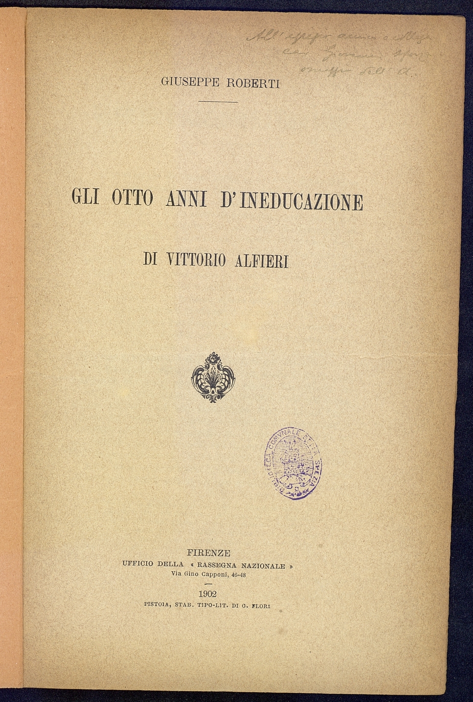 Titolo: Gli otto anni d'ineducazione di Vittorio Alfieri