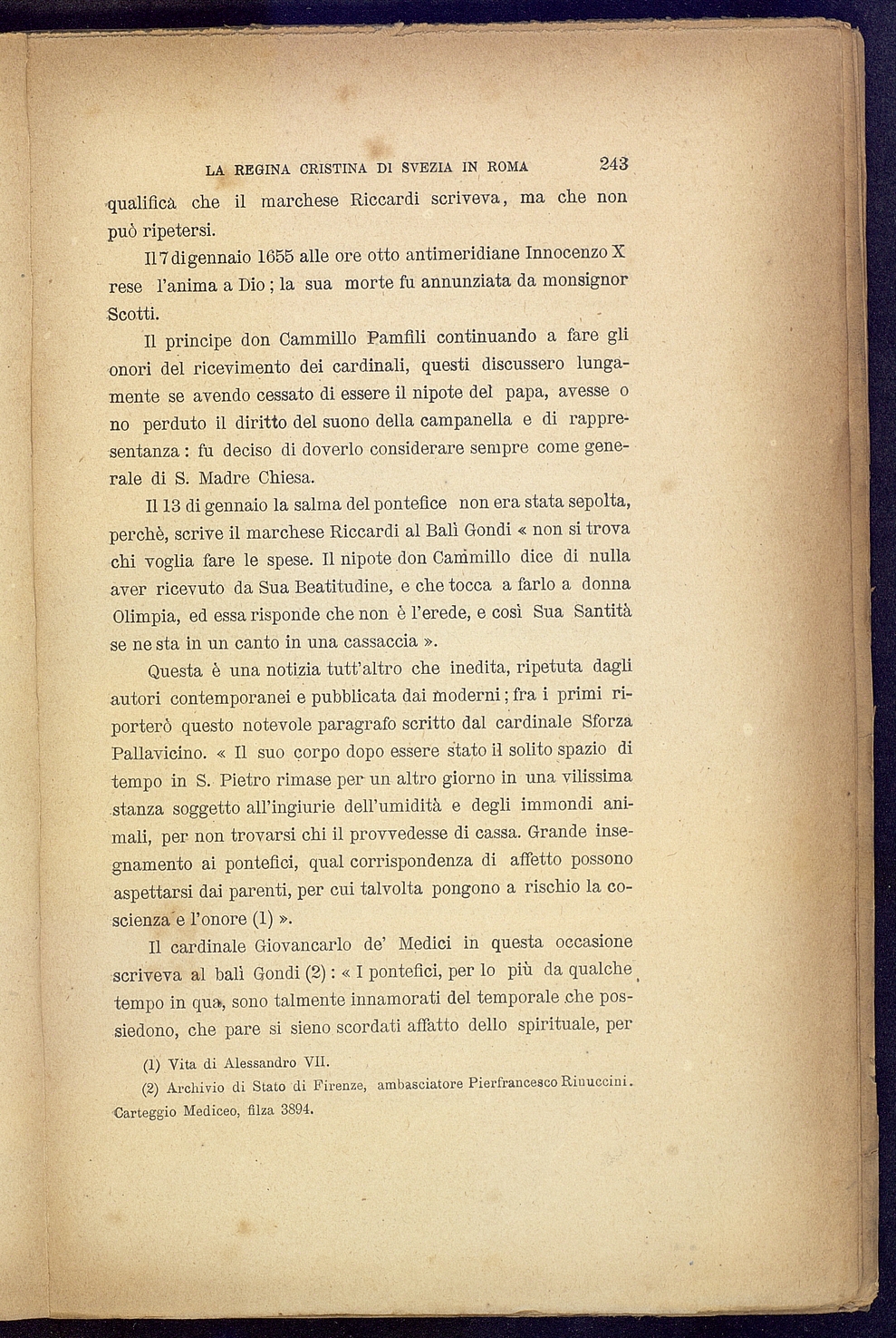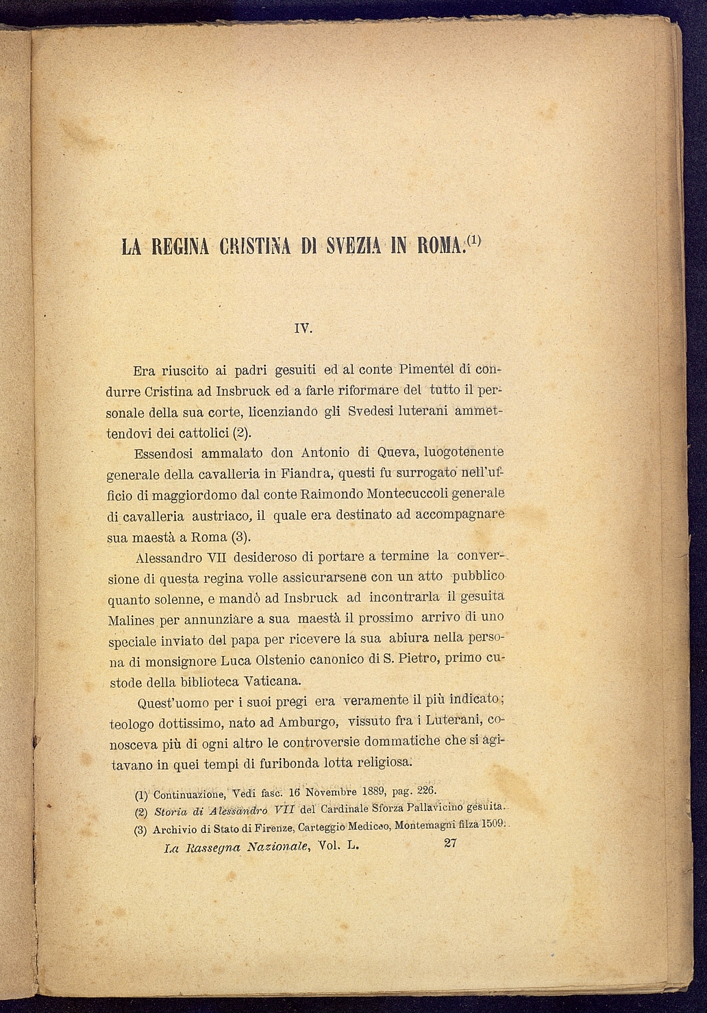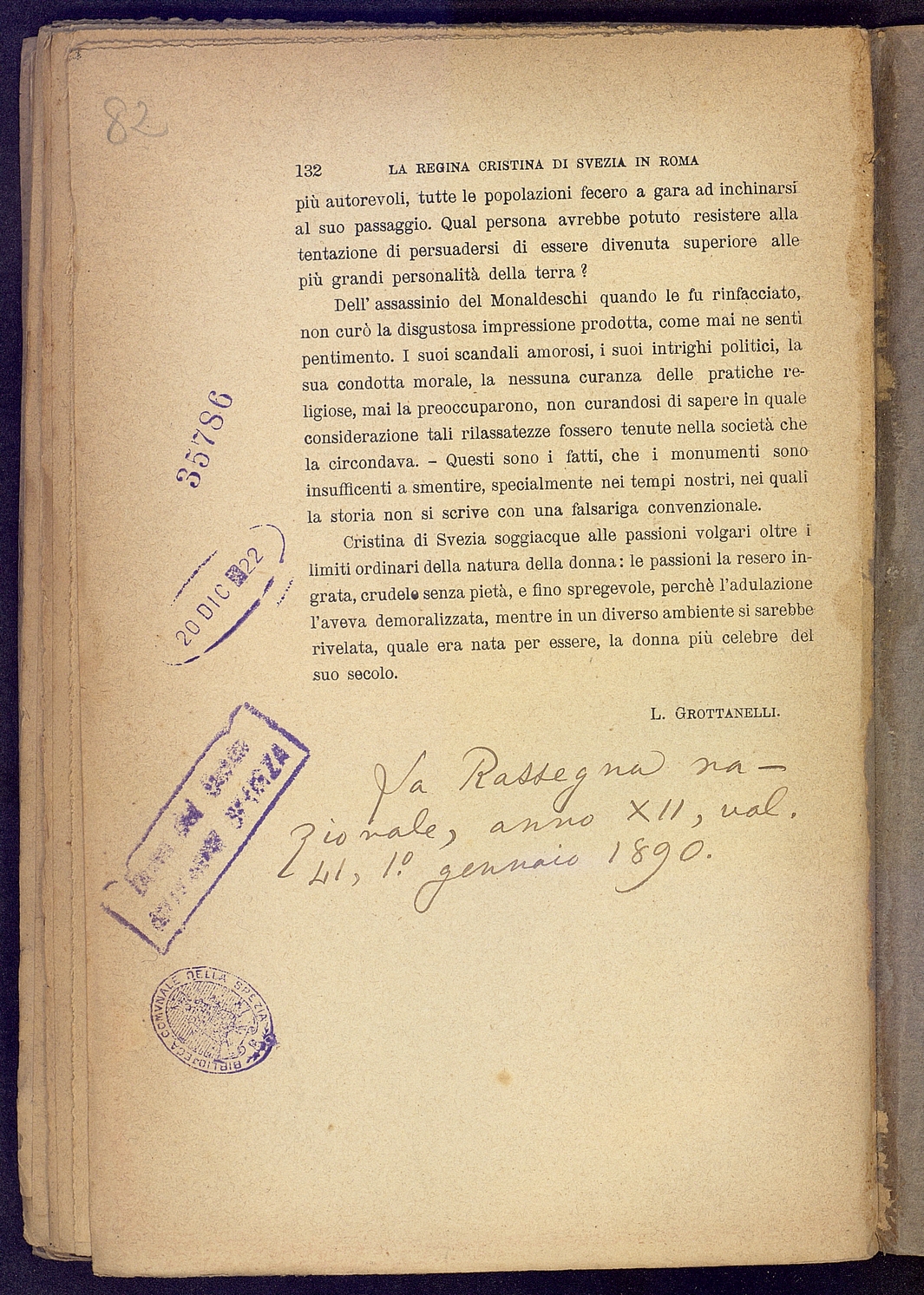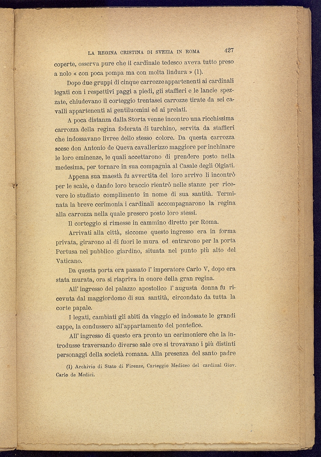 Tipo documento: TestoLivello bibliografico: Monografia Titolo: La regina Cristina di Svezia in RomaAutore: Grottanelli L.Data di pubblicazione: 1890Identificativo: MXS087024ARK: ark:/64639/MXS087024ARK: ark:/64639/MXS087024/38426