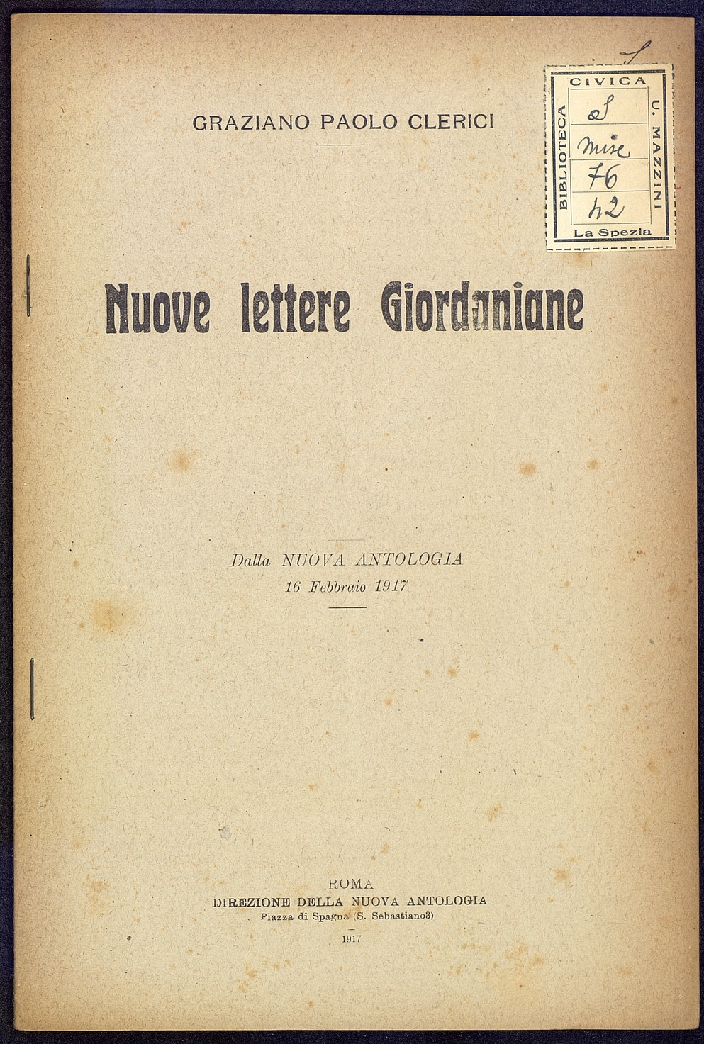 Titolo: Nuove lettere Giordaniane