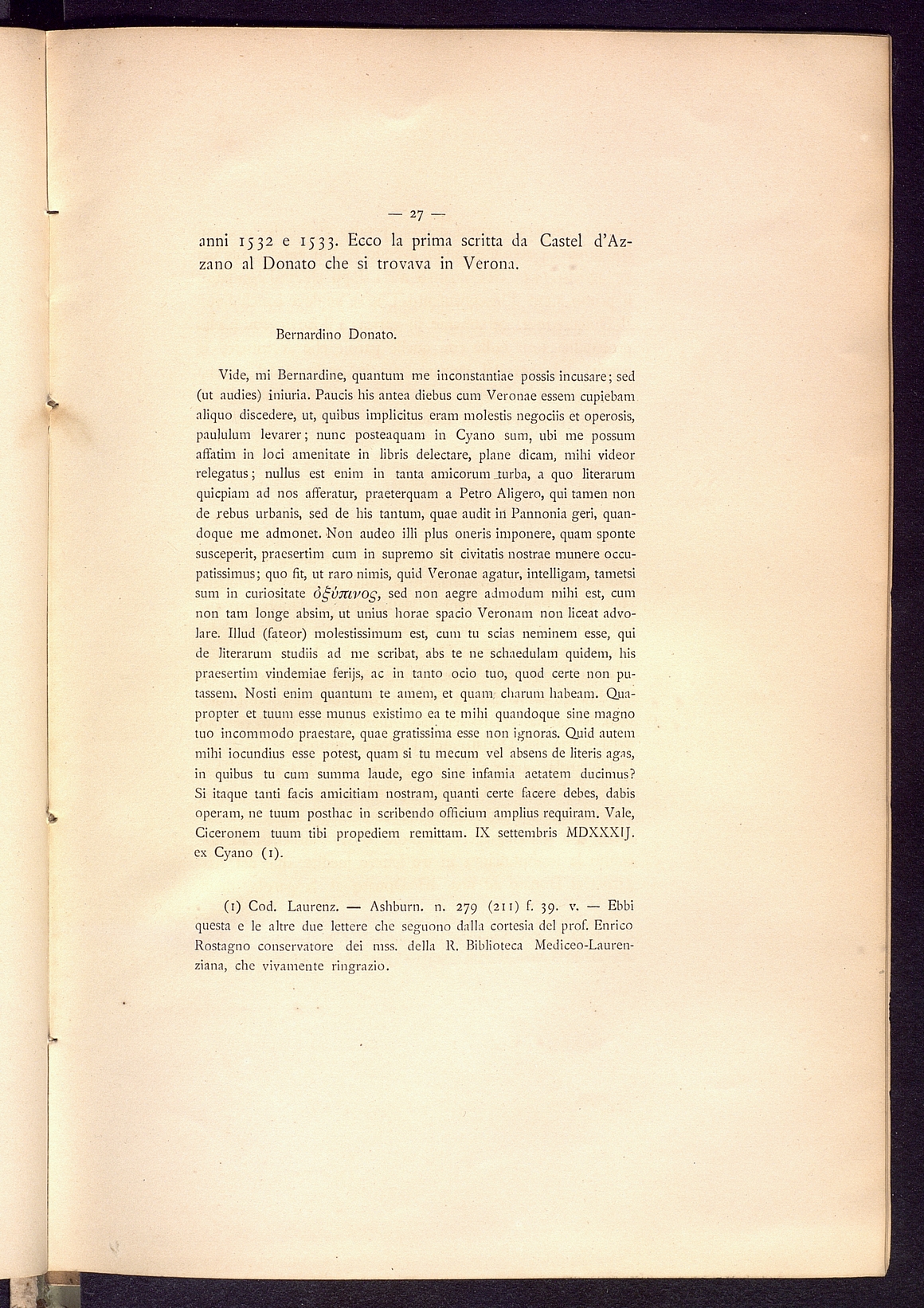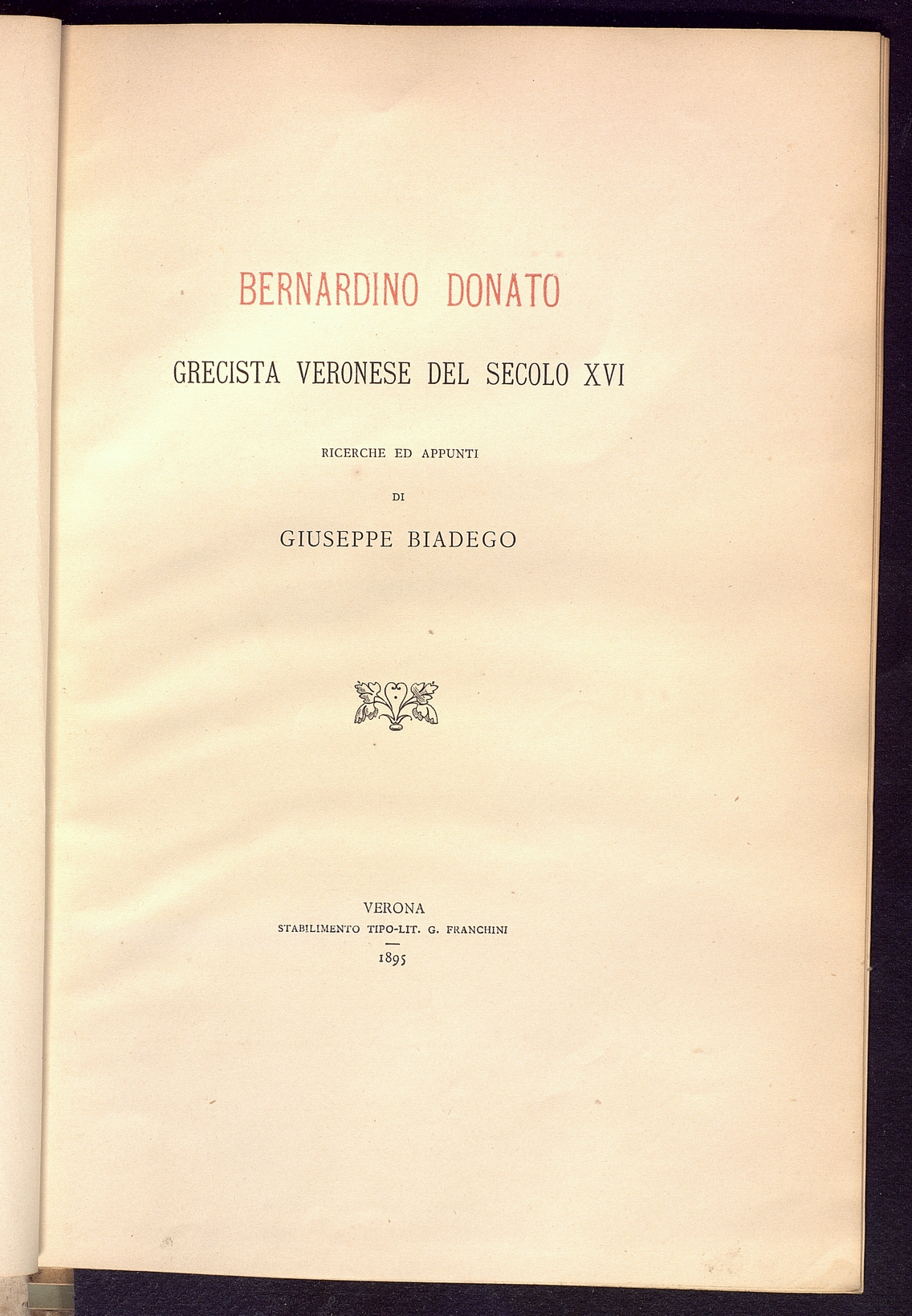 Titolo: Bardino Donato grecista veronese del secolo XVI