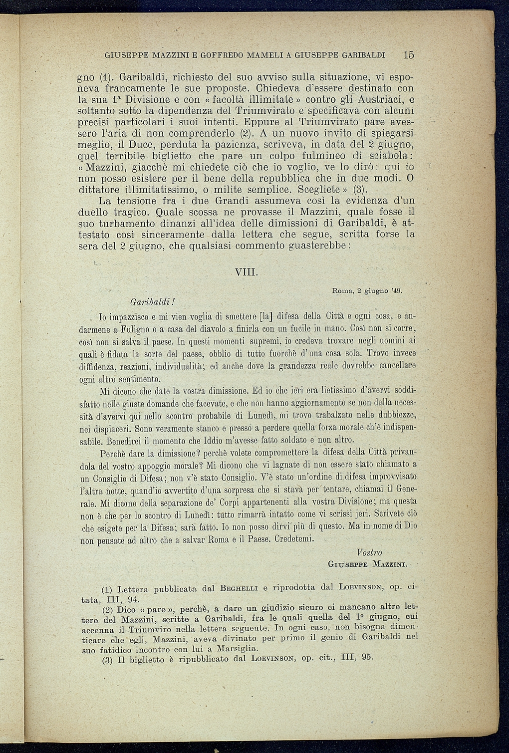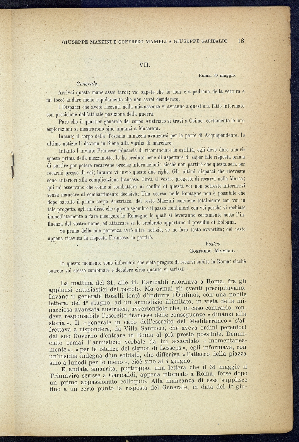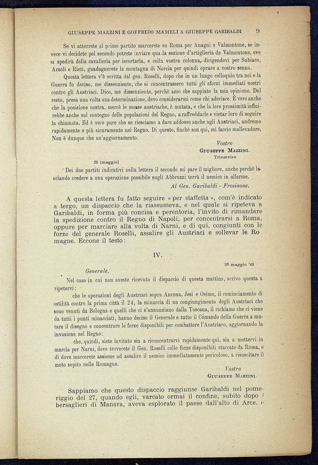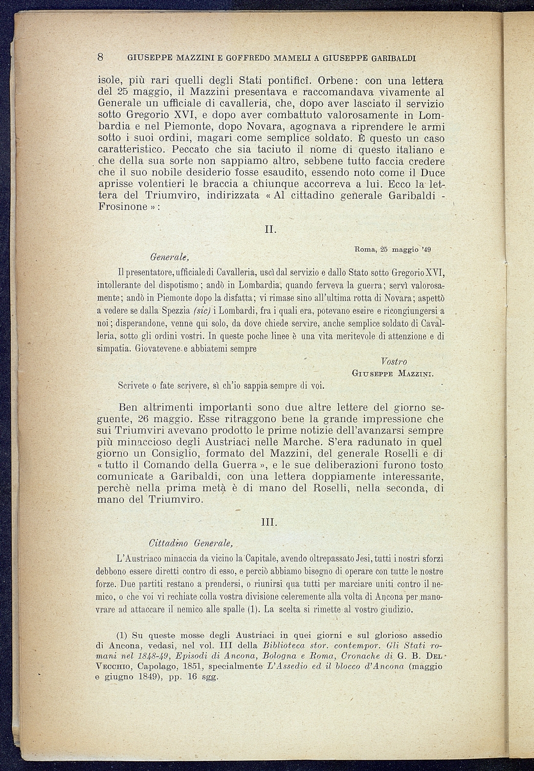 Titolo: Giuseppe Mazzini e Goffredo Mamelli a Giuseppe Garibaldi