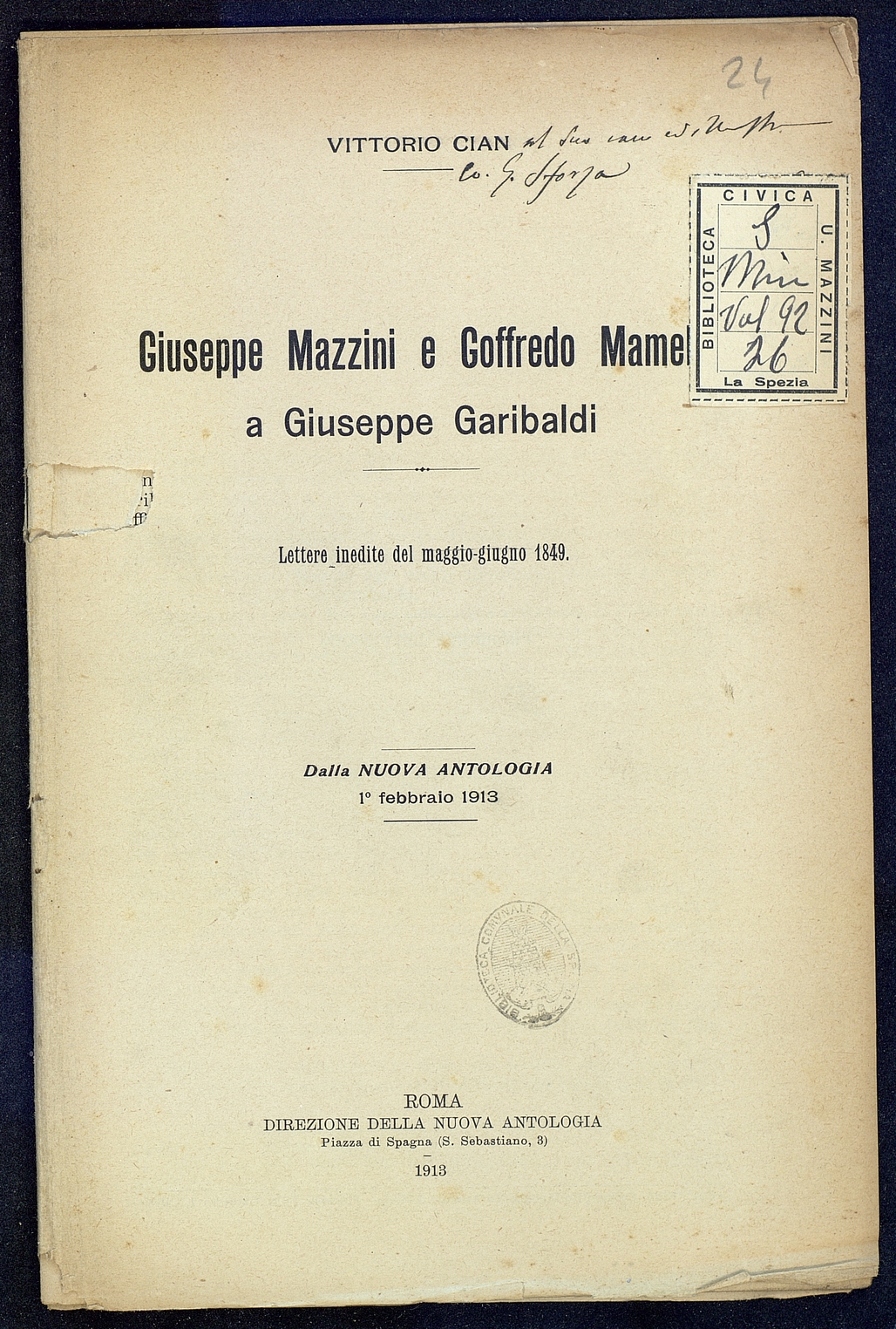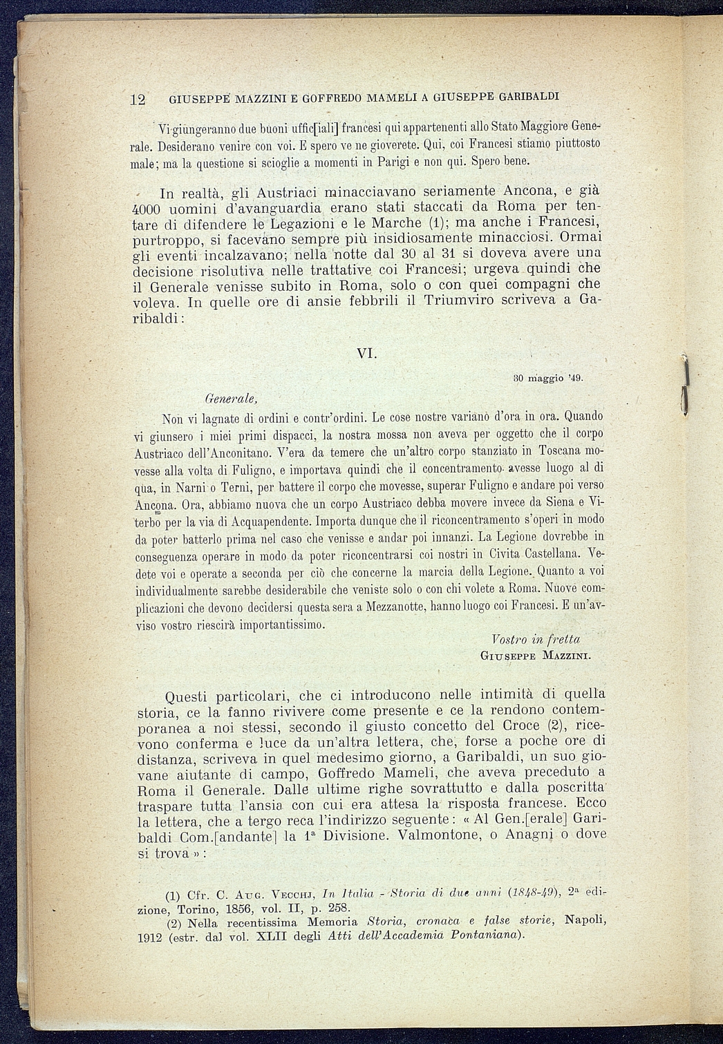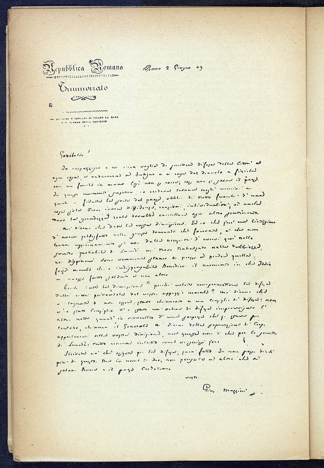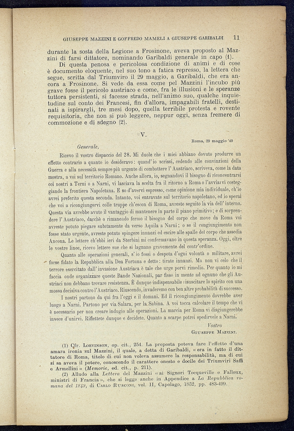 Titolo: Giuseppe Mazzini e Goffredo Mamelli a Giuseppe Garibaldi