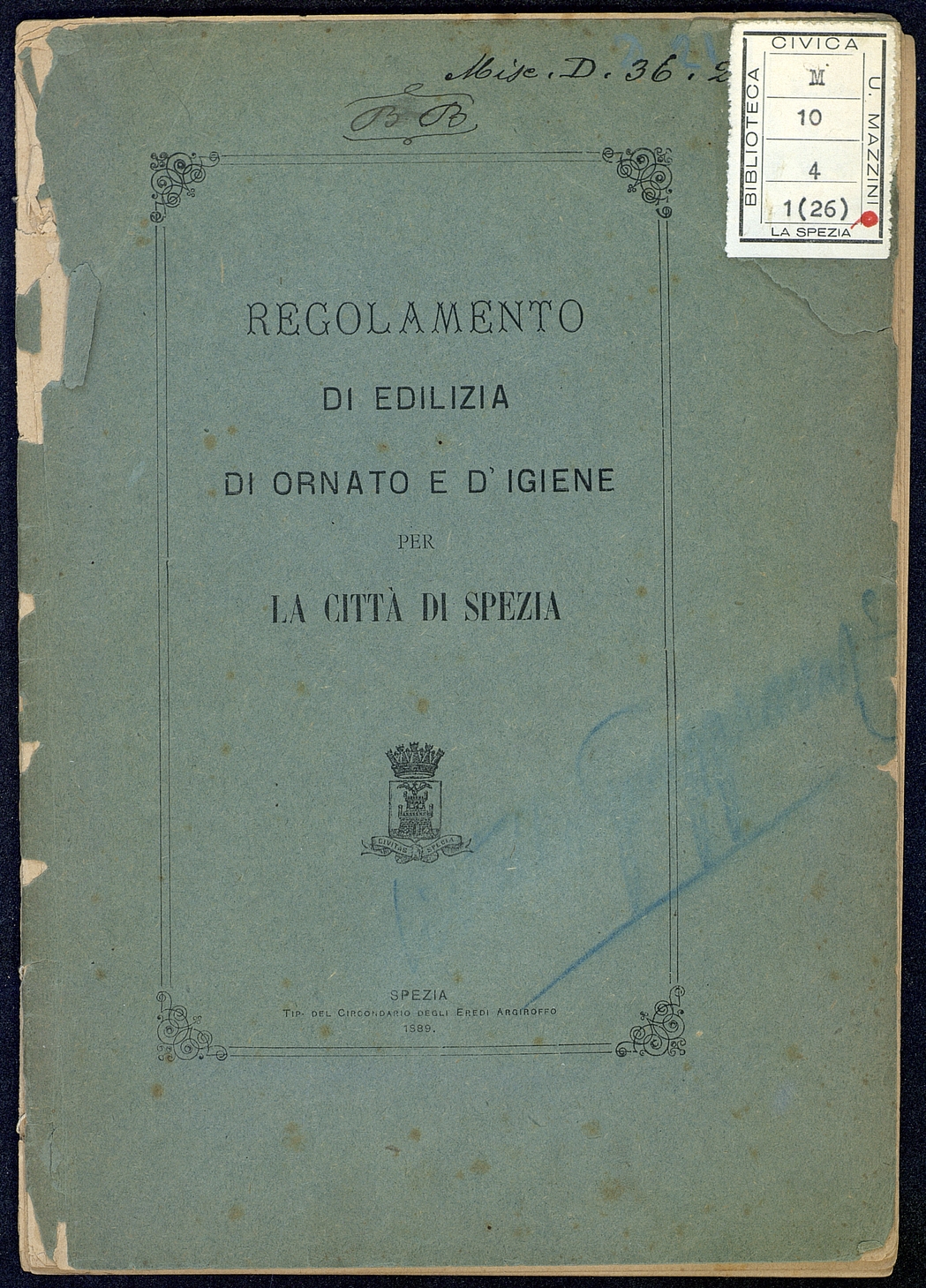 Titolo: Regolamento di edilizia di ornato e d'igiene per la citta' di Spezia