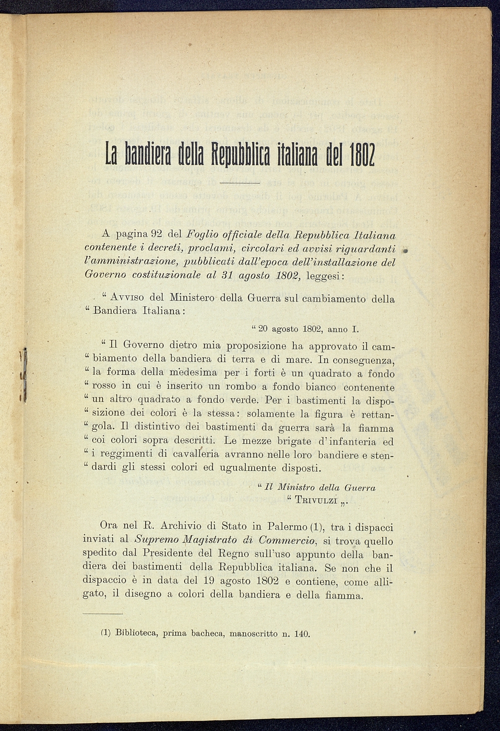 Titolo: La bandiera della Repubblica italiana nel 1802