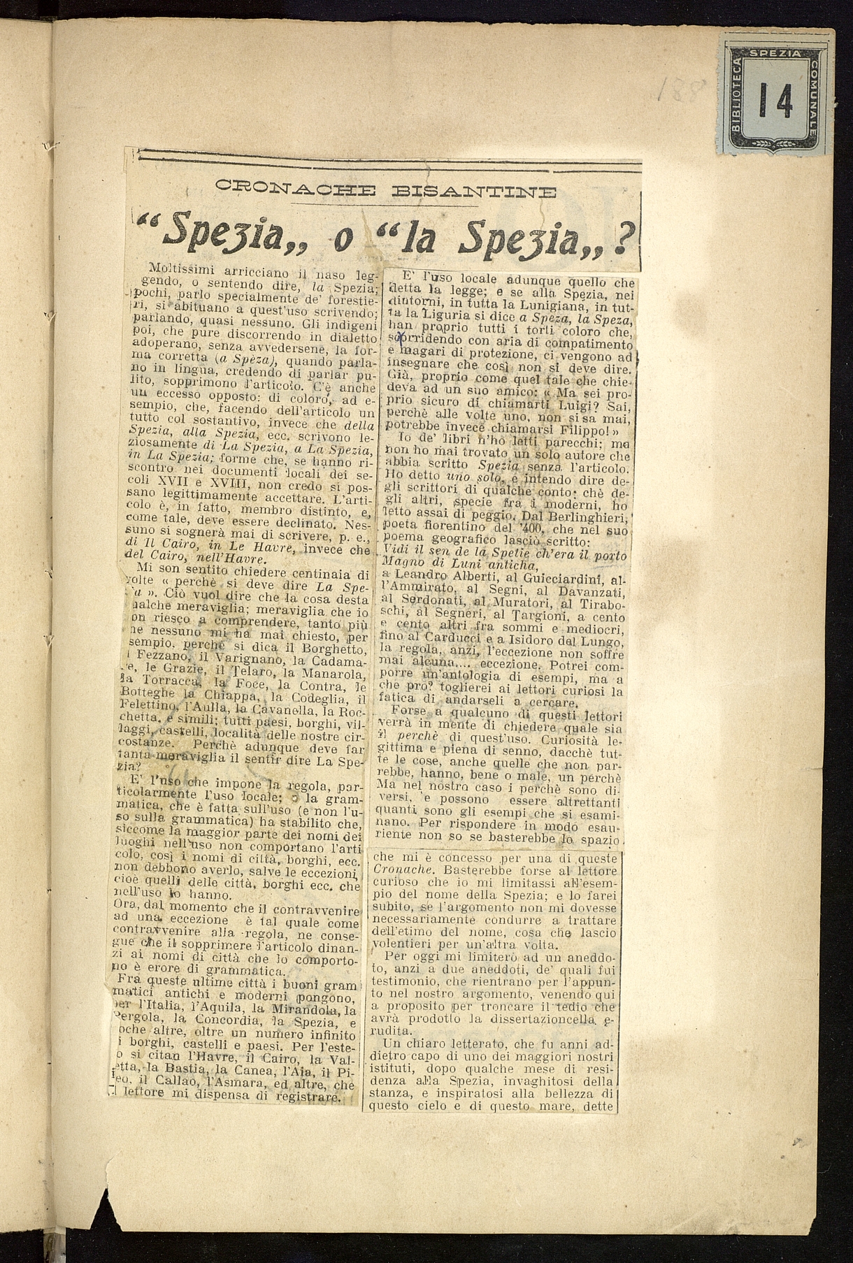 Titolo: Cronache bisantine: "Spezia" o "La Spezia"