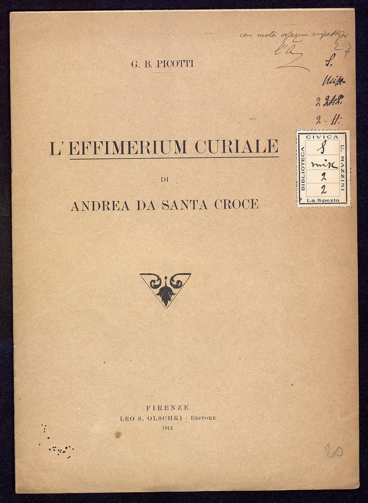 Titolo: L'effimerium Curiale di Andrea da Santa Croce