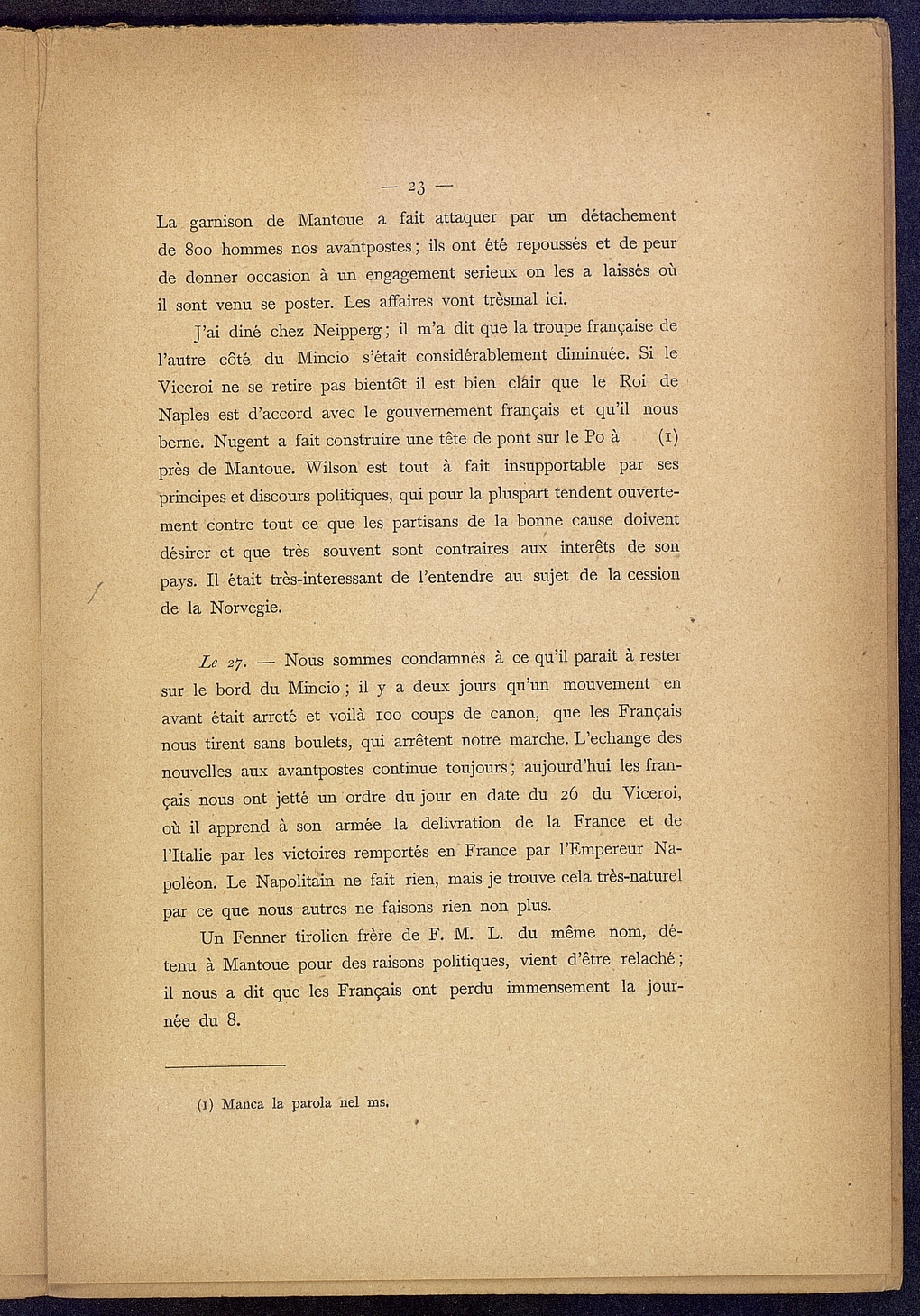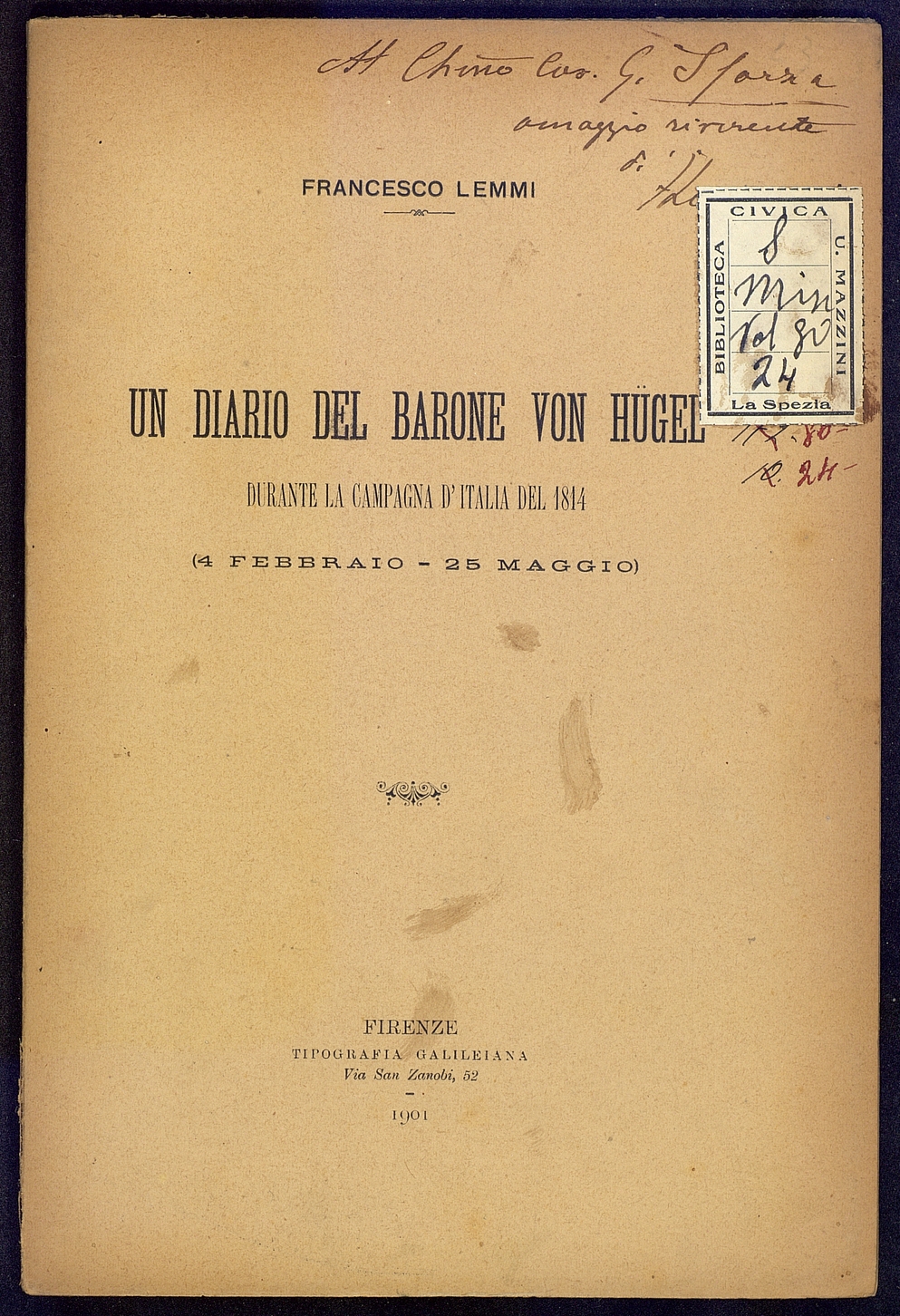 Titolo: Un diario del Barone Von Hugel durante la campagna d'Italia del 1814
