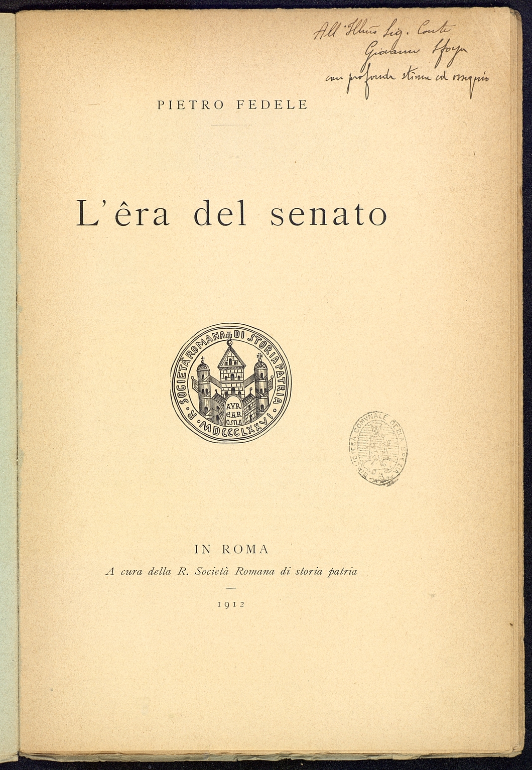 Tipo documento: TestoLivello bibliografico: Monografia Titolo: L'era del SenatoAutore: Fedele P.Data di pubblicazione: 1912Identificativo: MXS070017ARK: ark:/64639/MXS070017ARK: ark:/64639/MXS070017/37937