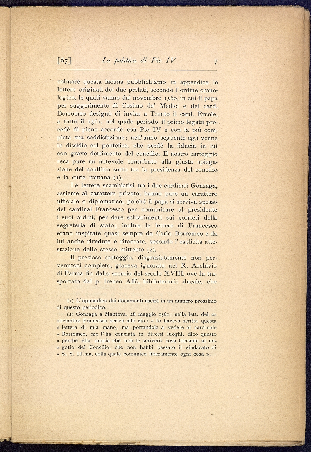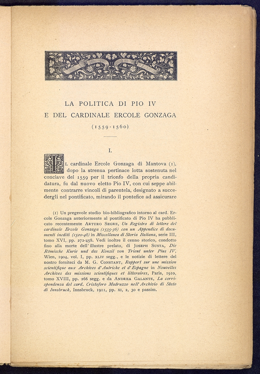 Titolo: La politica di Pio IV e del cardinale Ercole Gonzaga (1559-1560)