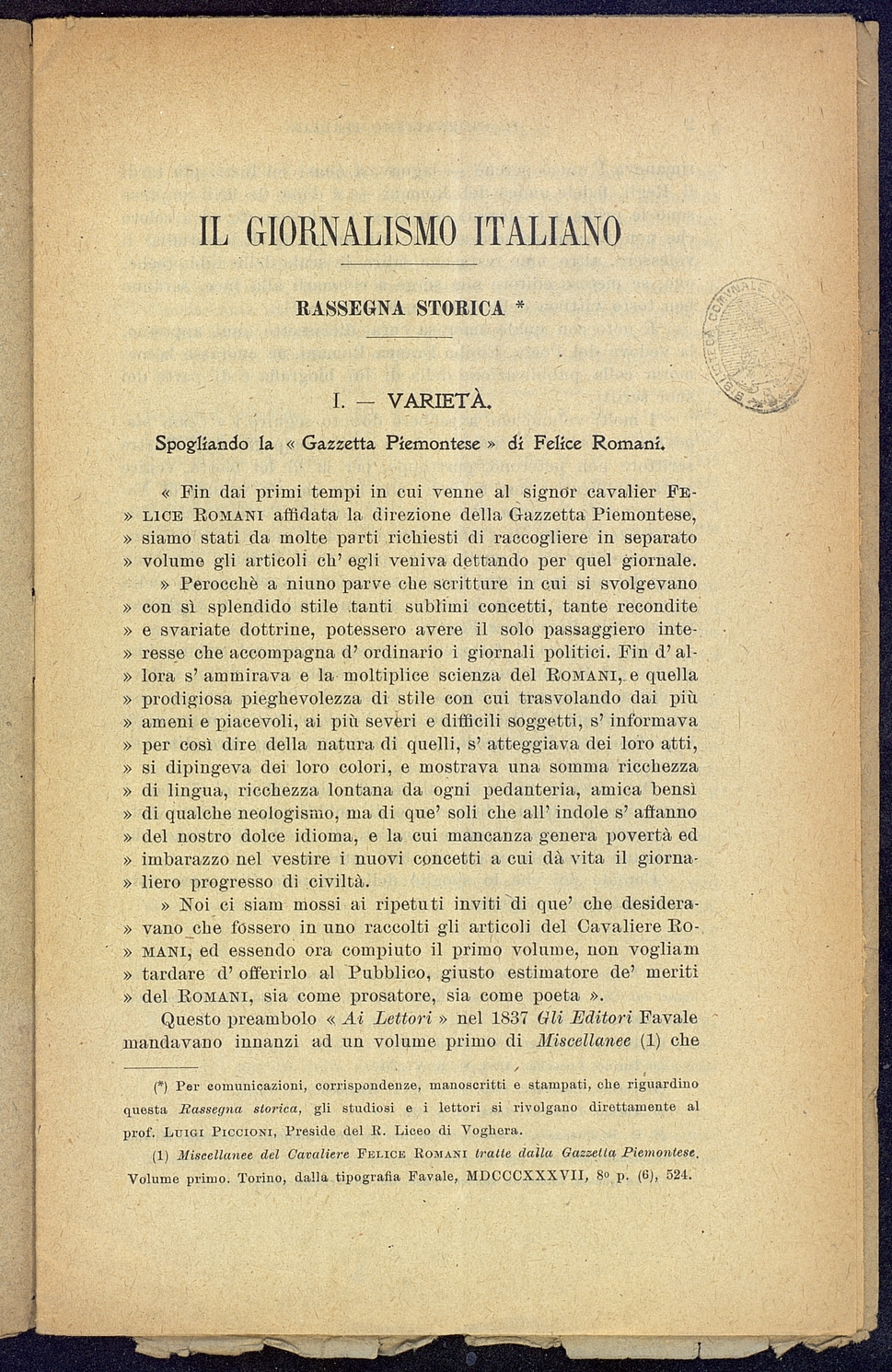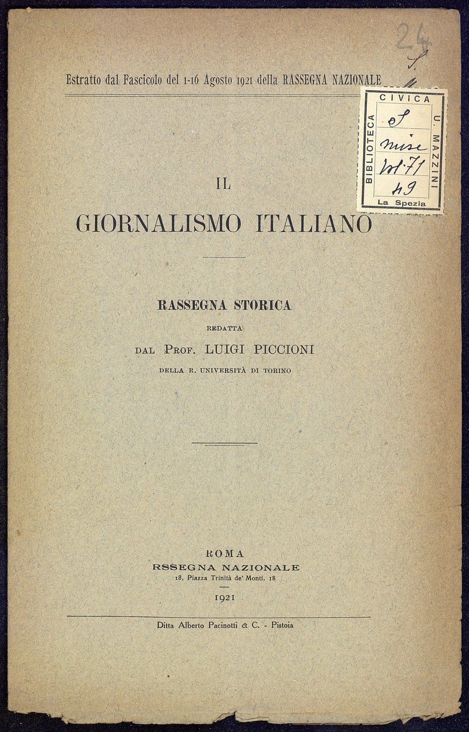 Titolo: Il Giornalismo Italiano fascicolo di Agosto della Rassegna Nazionale