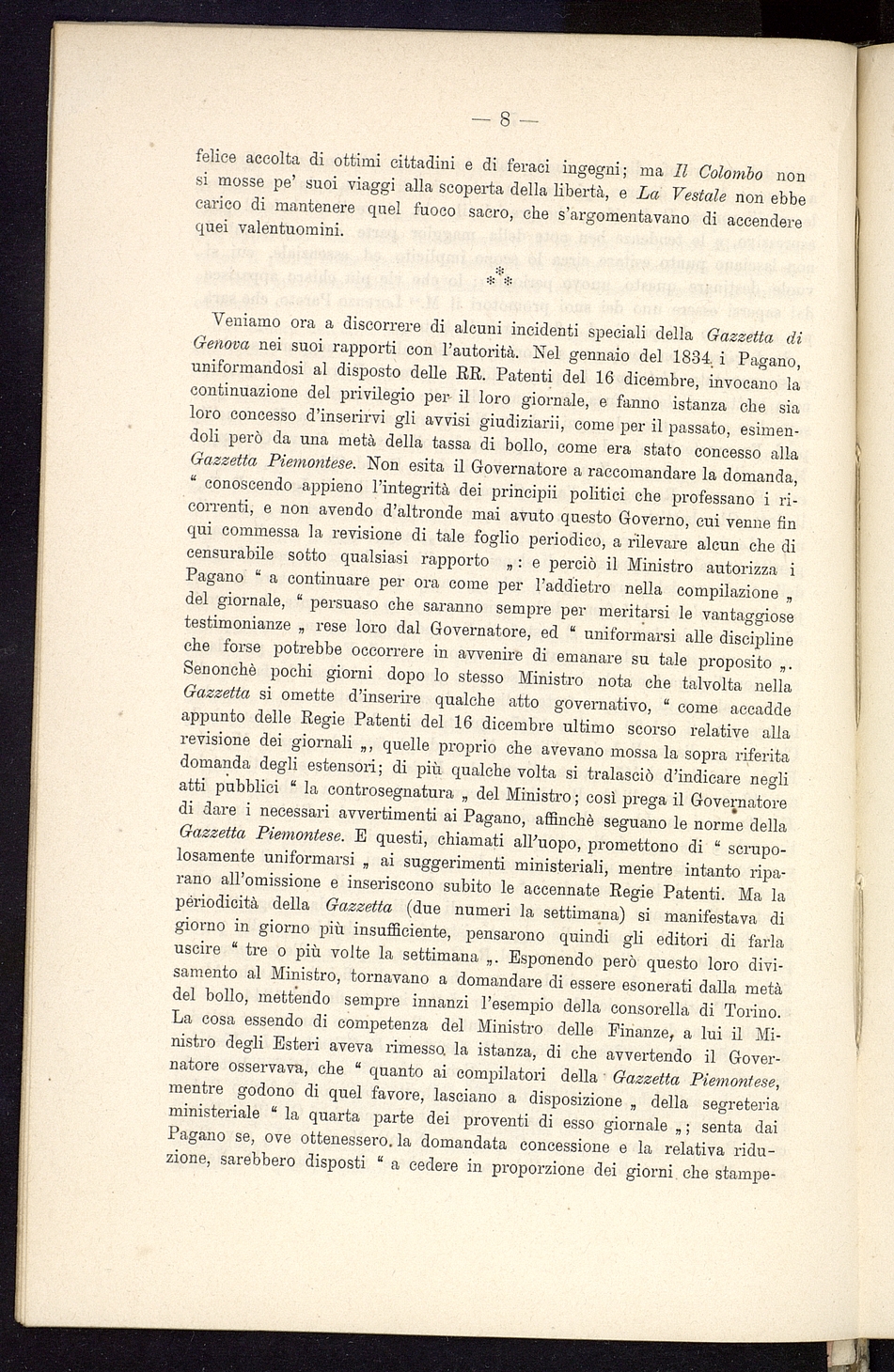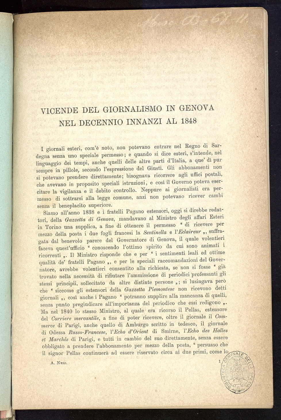 Titolo: Vicende del giornalismo in Genova nel decennio innanzi al 1848