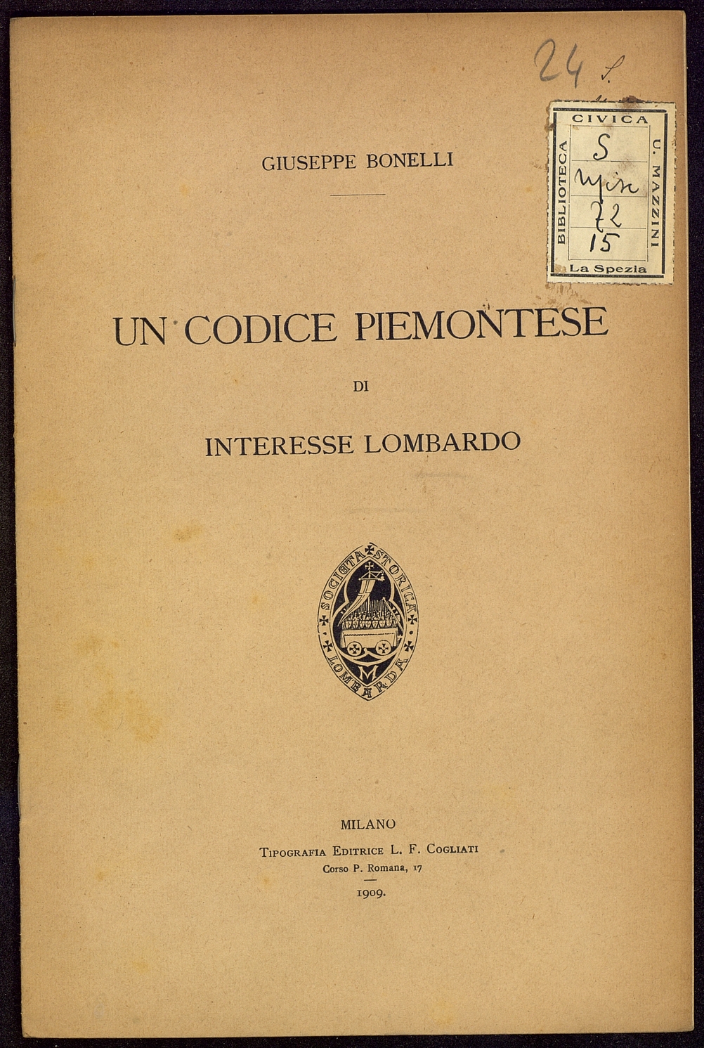 Tipo documento: TestoLivello bibliografico: Monografia Titolo: U codice piemontese di interesse lombardoAutore: Bonelli G.Data di pubblicazione: 1909Identificativo: MXS072015ARK: ark:/64639/MXS072015ARK: ark:/64639/MXS072015/38008