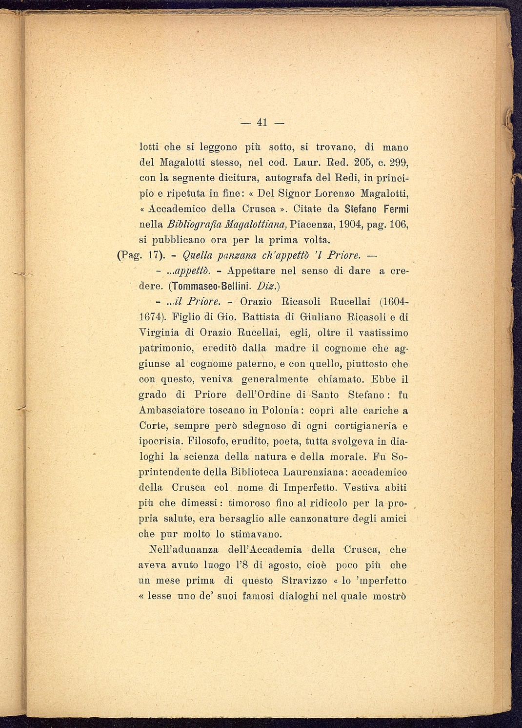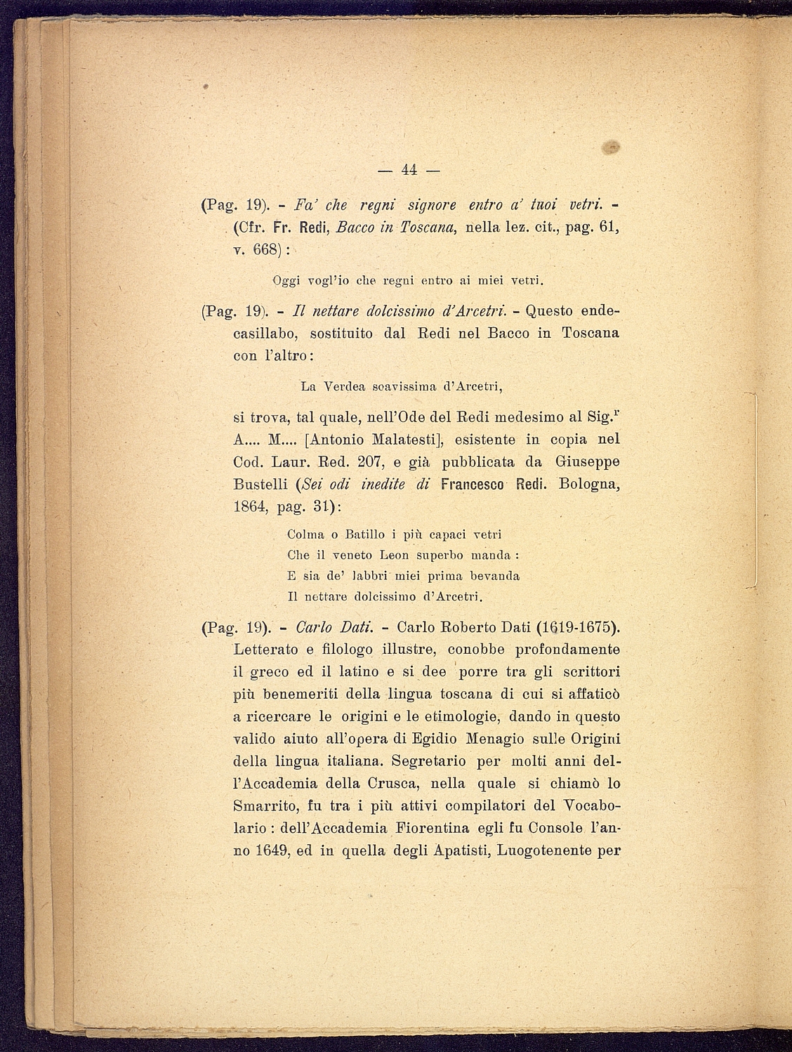 Titolo: Lo "Stravizzio " della Crusca del 12 Settembre 1666 e l'origine del "Bacco in Toscana"
