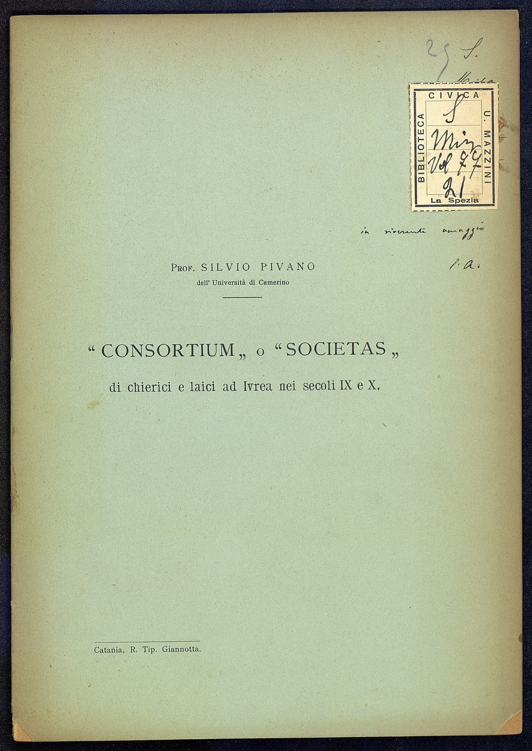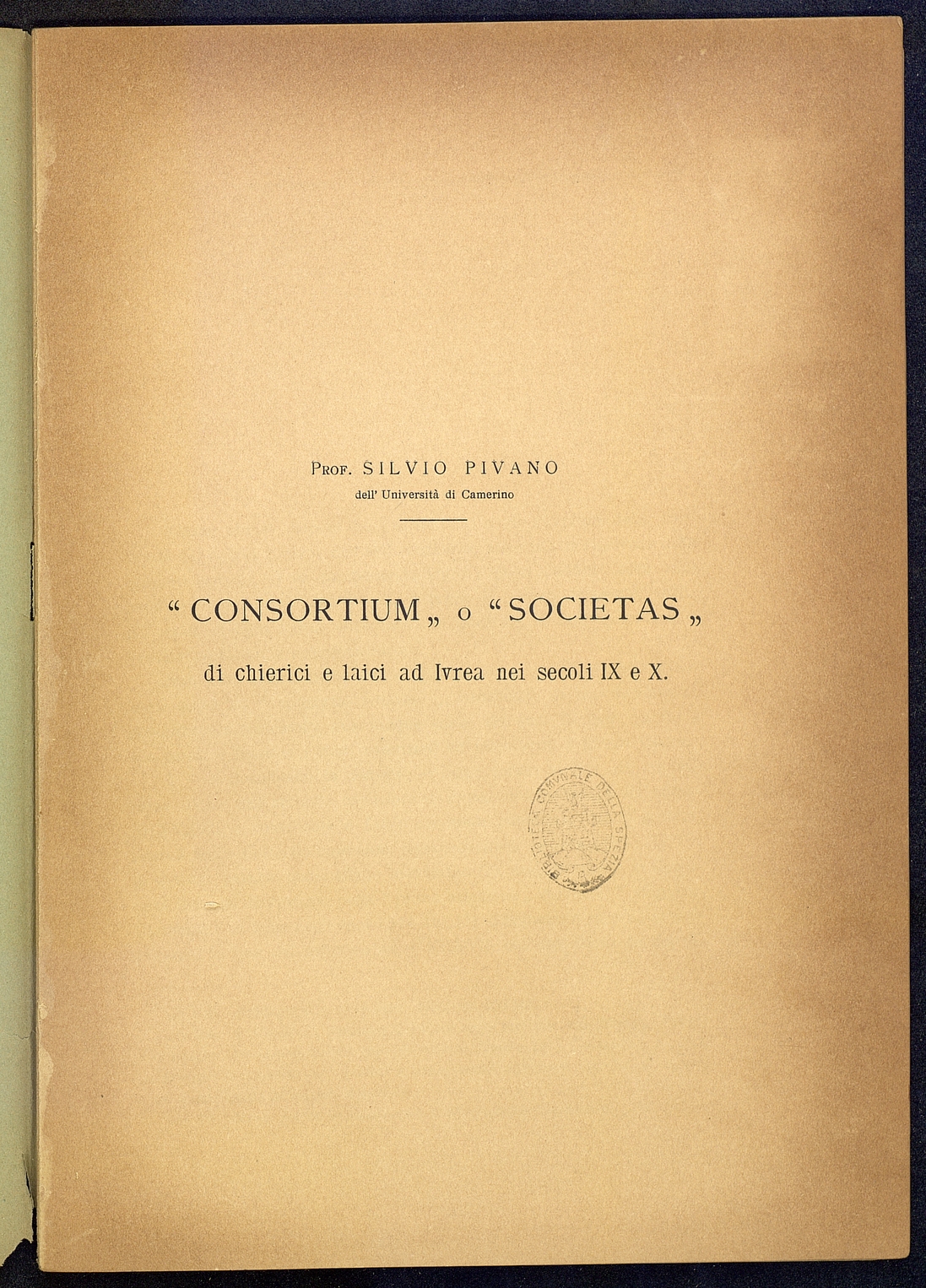 Titolo: "Consortium" o "Societas" di chierici e laici ad Ivrea nei secoli IXeX